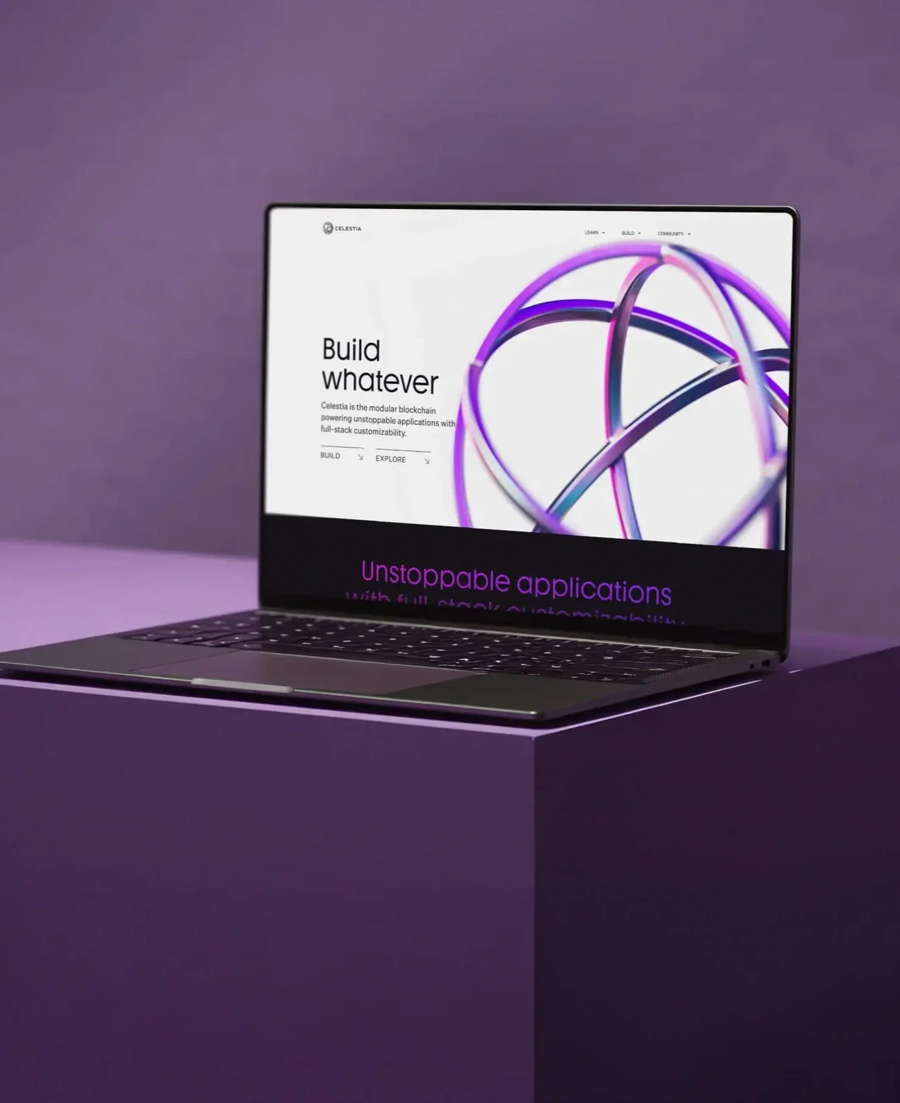 The result: an arresting identity and website that conveys simplicity, possibility, and approachability—designed to engage developers and creators while honoring Celestia’s technical roots.